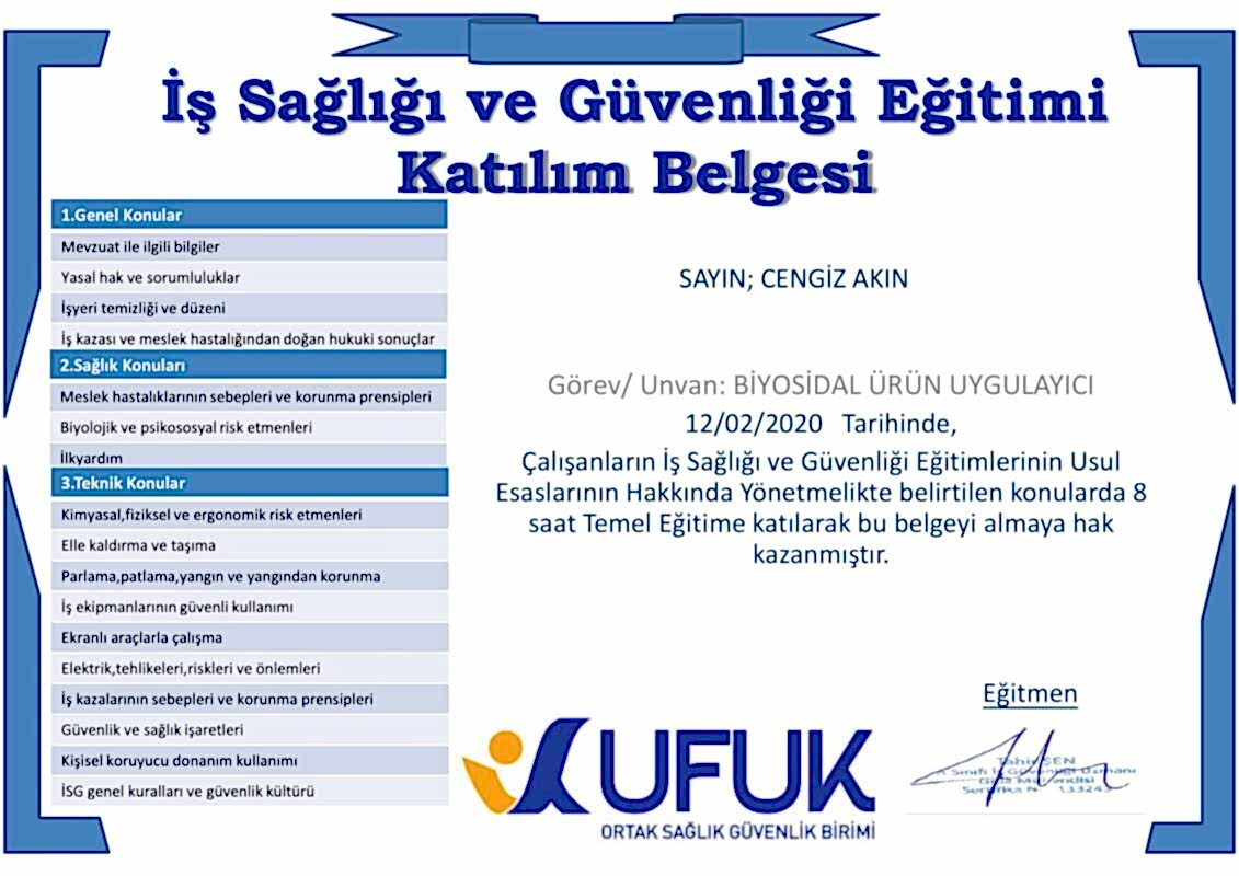 • BURSA İLAÇLAMA VE DEZENFEKSİYON